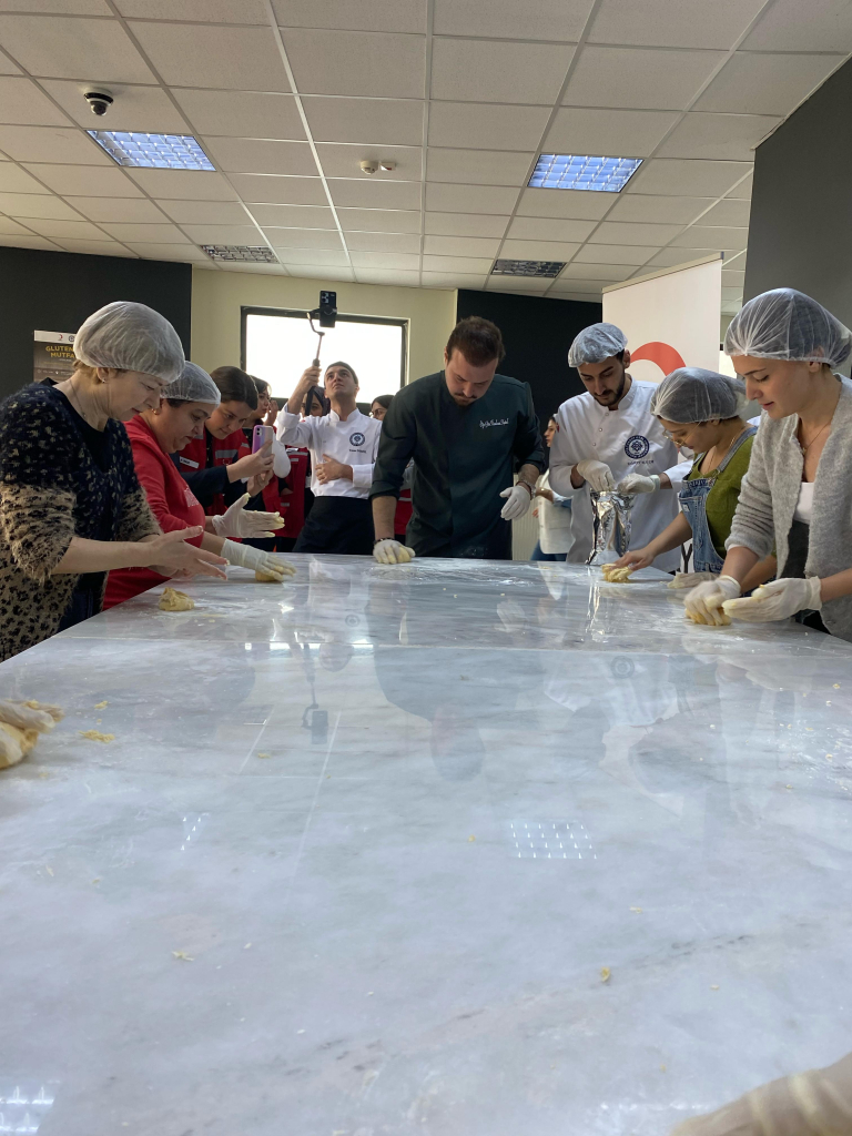 27 Şubat 2025 tarihinde gerçekleştirilen etkinlikte, çölyak hastalarına yönelik beslenme farkındalığı artırılırken, glutensiz makarna ve kurabiye yapımı uygulamalı olarak öğretildi. Katılımcılar, profesyonel aşçılar eşliğinde hem teorik hem de pratik bilgiler edinerek çölyak hastalığına uygun beslenme konusunda bilinçlendirildi.