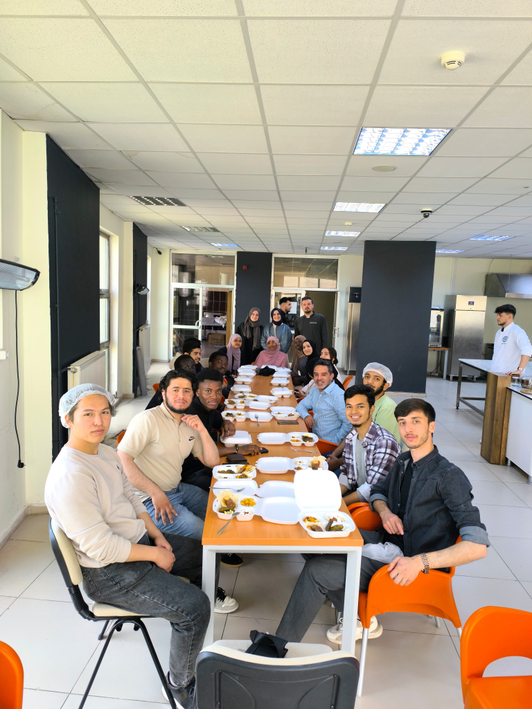 Üniversitemiz Türkçe Öğretimi Uygulama ve Araştırma Merkezinde (TÖMER) eğitim gören yabancı uyruklu öğrenciler, Yüksekokulumuz Aşçılık programı öğrencileriyle bir araya gelerek Türk mutfağına özgü yemekler yaptı.