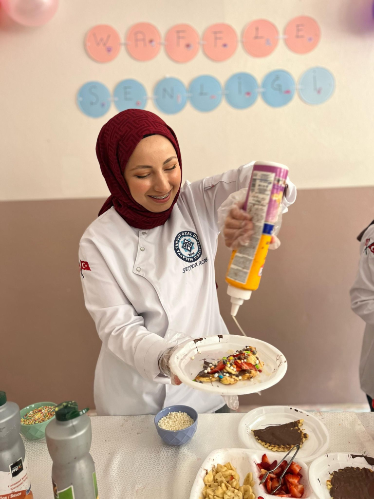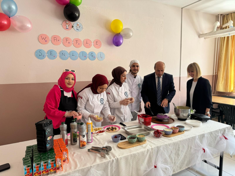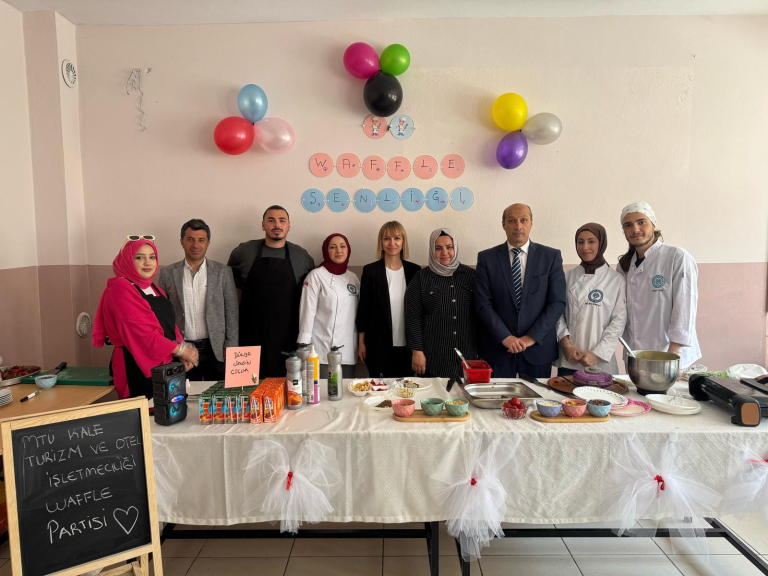 Yüksekokulumuz Aşçılık öğrencileri, Topluma Hizmet Uygulamaları dersi kapsamında Kale Bent İlkokulunda öğrencilere yönelik anlamlı bir sosyal sorumluluk projesi gerçekleştirdi. 29 Nisan Salı günü hayata geçirilen projede yer alan öğrencilerimiz Melike Akbulut, Şeyda Acar ve Eren Say, “Tatlı Gülüşler Projesi” ile waffle hazırlayarak daha önce bu lezzeti tatmamış öğrencileri waffle ile tanıştırdı.