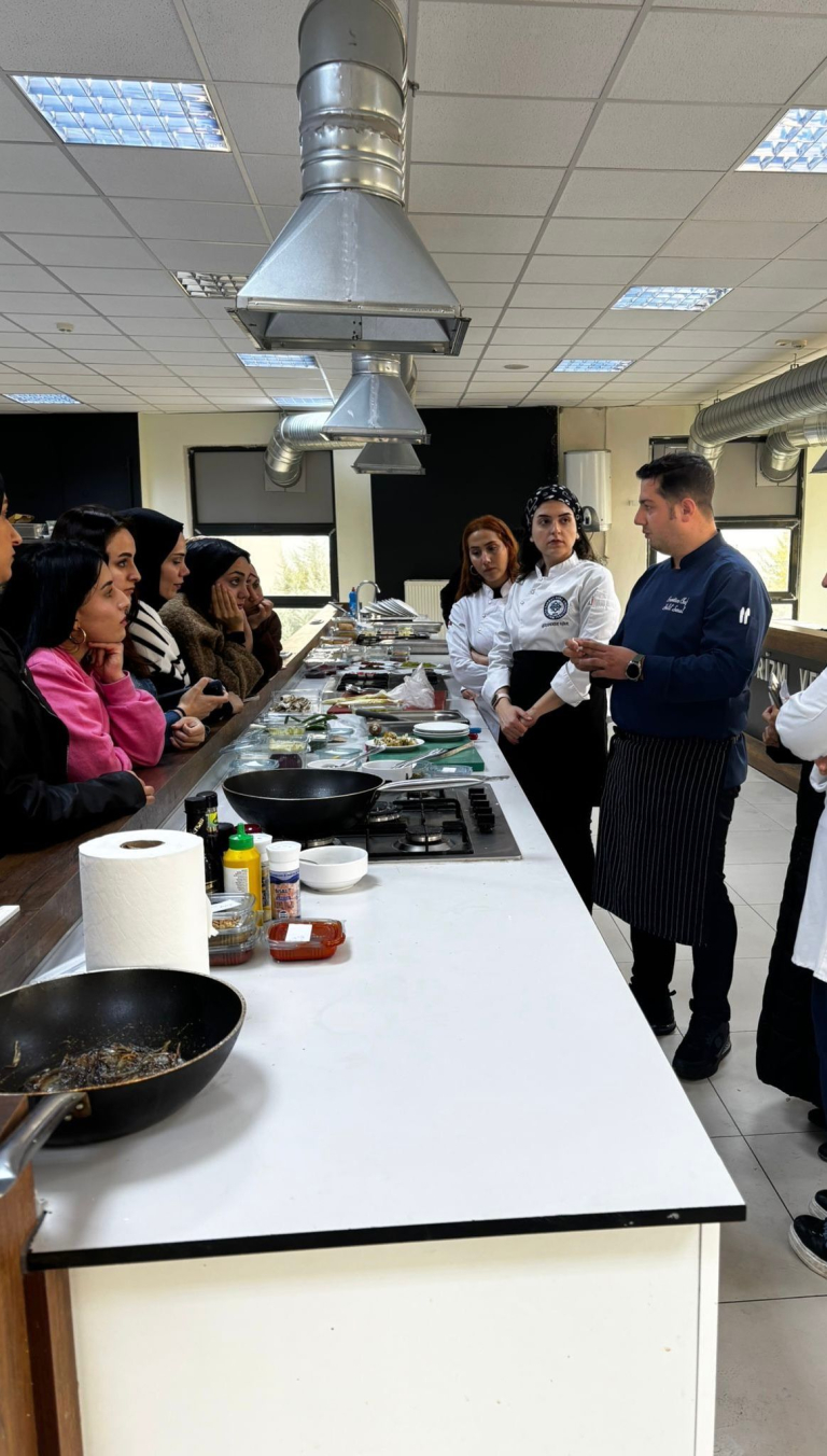 Aşçılık programı öğretim elemanı Öğr. Gör. Yaşarcan Ataş’ın da destek verdiği söyleşide Şef Sarıal, konaklama işletmelerinde mutfak yönetimi, mutfaktaki temel beceriler, iyi bir aşçının özellikleri gibi konularda öğrencilerle tecrübelerini paylaştı. Şef Halil Sarıal’a etkinliğimize katıldığı ve öğrencilerimize unutulmaz bir deneyim yaşattığı için çok teşekkür ederiz.