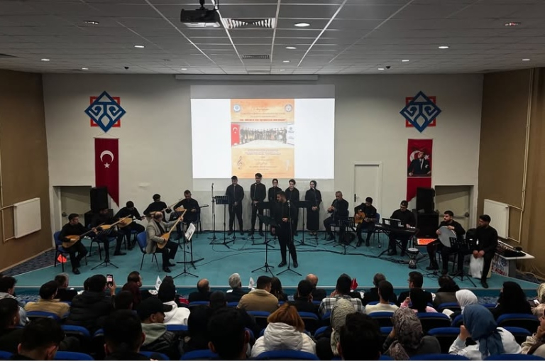 Üniversitemiz Sanat Tasarım ve Mimarlık Fakültesi Müzik Bölümü Türk Müziği Topluluğu, İlçe MYO Konserleri kapsamında ilk konserini yüksekokulumuzda gerçekleştirdi.