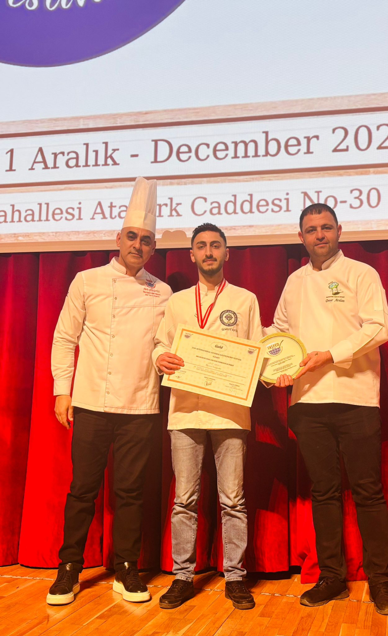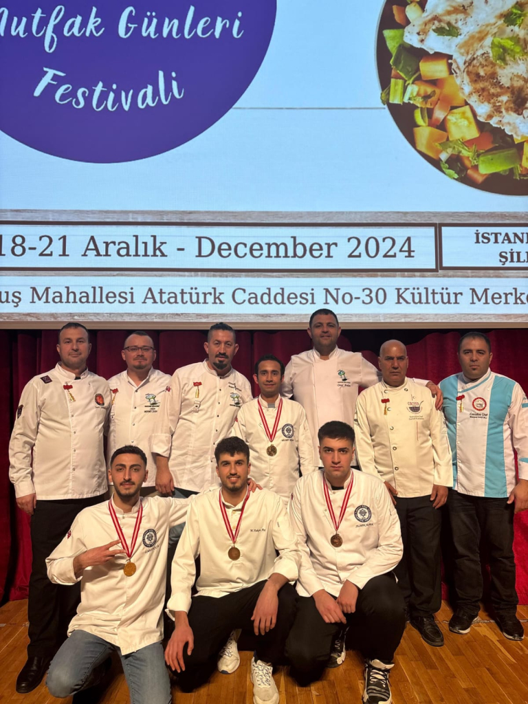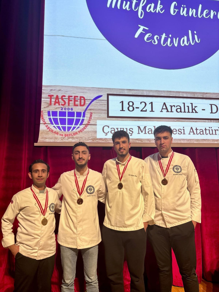 İstanbul Şile’de 18-21 Aralık 2024 tarihleri arasında düzenlenen ve Türkiye Aşçılar ve Şefler Federasyonu (TAŞFED) tarafından organize edilen, mutfak sanatlarının uluslararası ölçekteki en prestijli etkinliklerinden biri olan 21. Uluslararası Mutfak Günleri Festivali, büyük bir heyecana sahne oldu. Bu prestijli organizasyonda Üniversitemizi temsil eden Aşçılık Programı öğrencileri üstün başarı elde ederek 3 altın, 1 gümüş ve 1 bronz madalya kazandı.